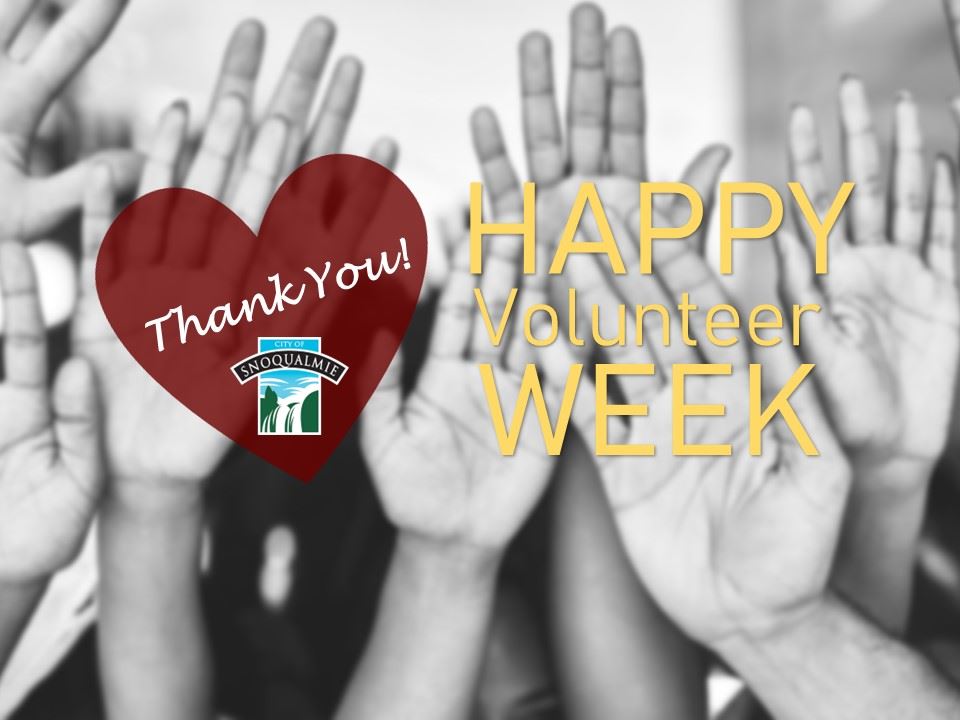 Snoqualmie, WA – The City of Snoqualmie honors Volunteer Week in recognition of the many local individuals who contribute countless hours toward programs and services benefiting the community. April is National Volunteer Month, April 16-22 is National Volunteer Week, and April 20 is National Volunteer Day. Mayor Katherine Ross proclaimed April 20 as Volunteer Appreciation Day in Snoqualmie.