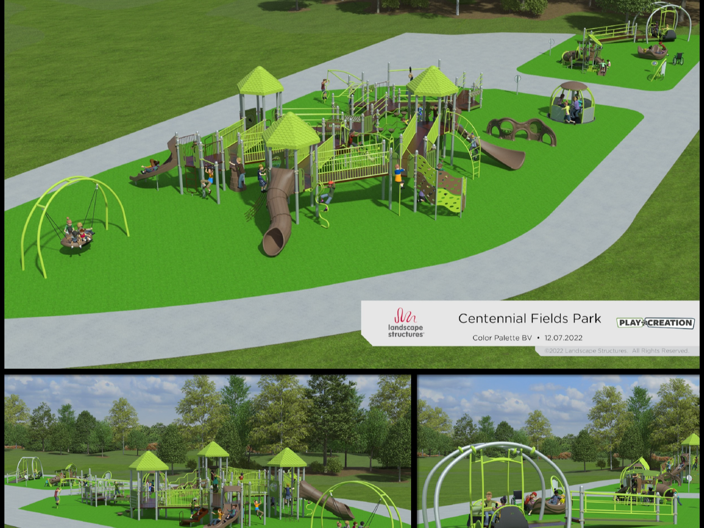 The $976,000 project is part of the City’s approved 2023-28 Capital Improvement Plan. The approved resolution authorizes the Mayor to sign a contract with NewX Construction for the Centennial Fields All-inclusive Playground Project. The Play Creation inclusive equipment purchase was approved by the City Council in spring 2023.