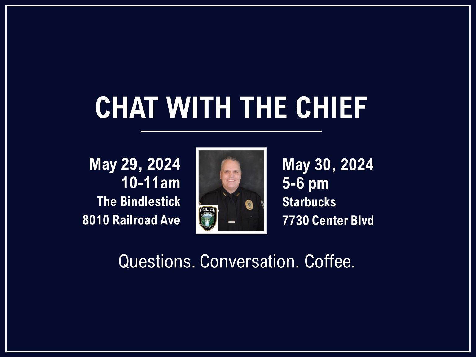 Chat with the Chief: Join Police Chief Lynch for Coffee and Conversation, May 29 and 30
