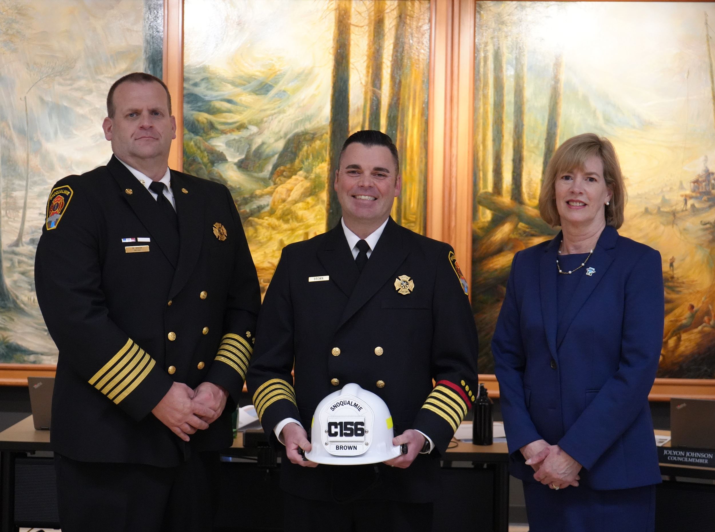 “It’s an honor and privilege to serve as the next deputy chief of the Snoqualmie Fire Department,” said Brown as he addressed the City Council and Mayor. “I’m excited to bring all of my experience and knowledge, and everything I have in my toolbelt, to the department after 20 years in the Air Force and a few years at the Academy.”