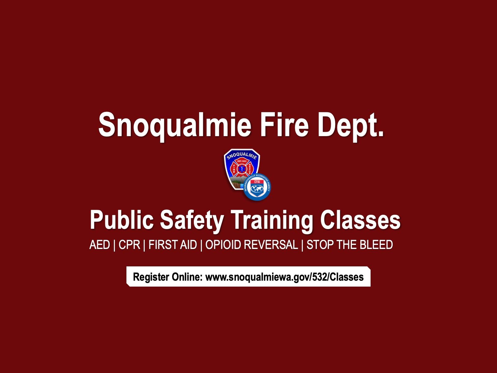 For a full description of each class offered by the Snoqualmie Fire Dept, please visit www.snoqualmiewa.gov/532/Classes.